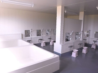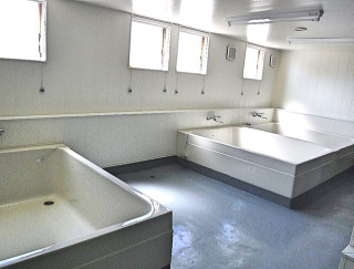 大きな浴槽が3つあるので、ゆったりとご入浴いただけます。 シャワーも豊富に設備されておりますので、 気兼ねなくご利用くださいませ。 *洗面所にドライヤーございます。