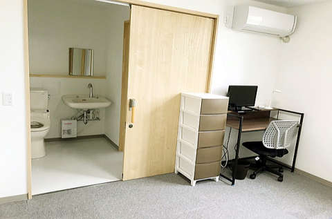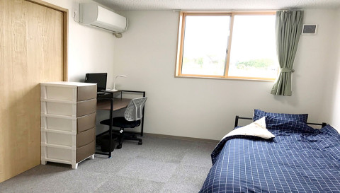全室テレビ、エアコン、机、ごみ箱、衣装ケース完備